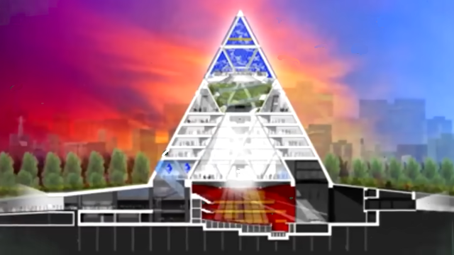 Dentro de la Pirámide de la Paz y la Seguridad hay un teatro subterráneo con un sol arriba. Como sabemos, fue adorado en un principio en las religiones antiguas.