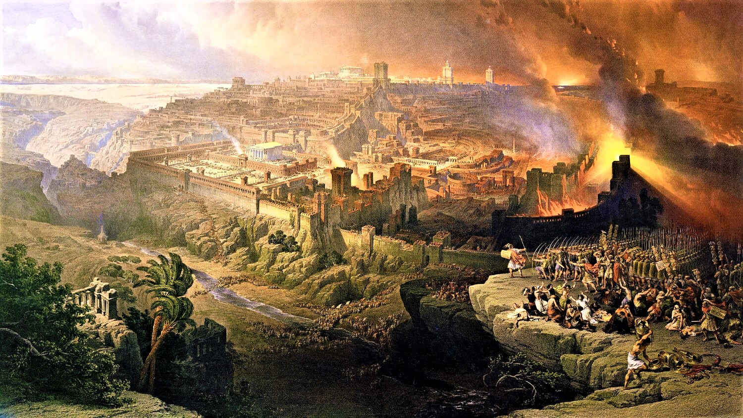 El fuego es un elemento esencial en la representación de la destrucción del templo por las legiones romanas, un evento catastrófico que, como el del 11 de septiembre de 2001, liberó el odio sionista.
