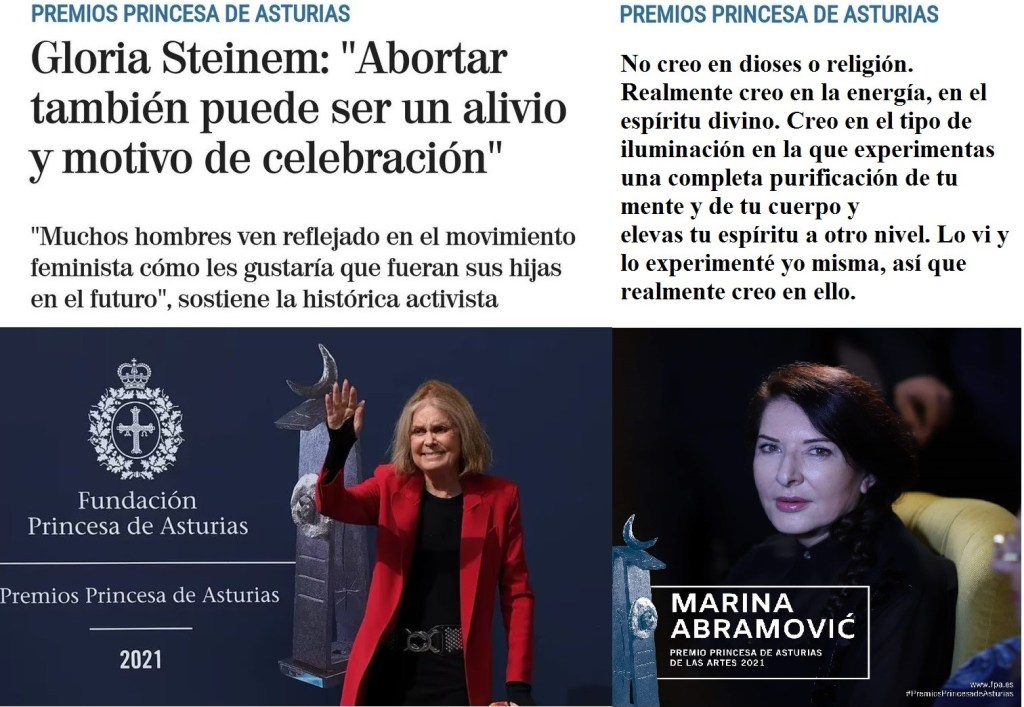 Los “prestigiosos” premios Princesa de Asturias reconocen la labor en favor del mundialismo satanista premiando a militantes abortistas e iluministas satánicos.