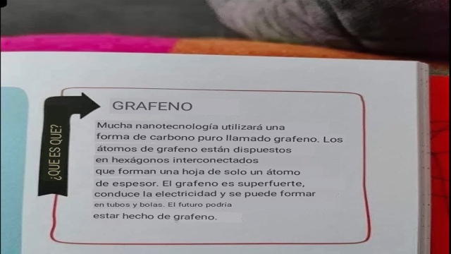 Mucha nanotecnología utilizará esta forma de carbono puro, llamado grafeno. Los átomos de grafeno están dispuestos en hexágonos interconectados que forman una hoja de solo un átomo de espesor el grafeno es súper fuerte, conduce la electricidad y se puede formar en tubos y bolas el futuro podría estar hecho de grafeno.