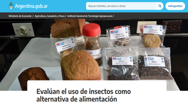 Tan presto llegó el 2023 (primer año del nuevo orden mundial, según la comisión trilateral) el gobierno argentino, por medio del ministerio de agricultura, publicaba en su sitio web que se evaluaría el uso de insectos como alternativa de alimentación.