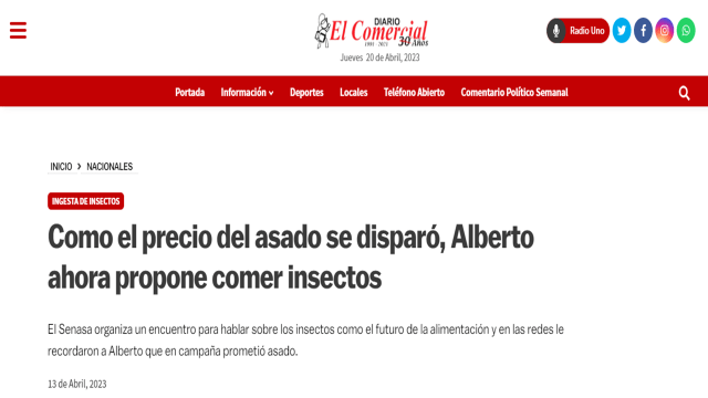 Pero, “Al VERSO” Fernández, ¿no prometió asado? Sí, pero…, con el precio del tradicional plato argentino por las nubes y la disparada del costo de otros alimentos, en el Senasa no tuvieron mejor idea que plantear las ventajas de alimentarse con insectos. El organismo convocó «al Primer encuentro nacional de la cadena de valor de insectos para consumo humano y animal», y destacó la ingesta de insectos como «el futuro de la alimentación».