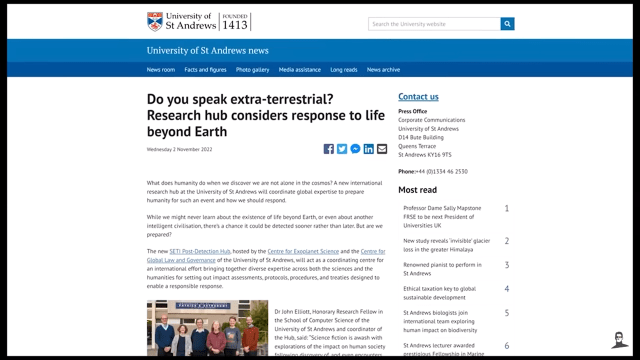 Vamos a ver otra serie de coincidencias aparentes, esto comienza con un hombre llamado John Elliot de la Universidad de San Andrés, que dijo tenemos que actualizar los llamados protocolos del CETI.