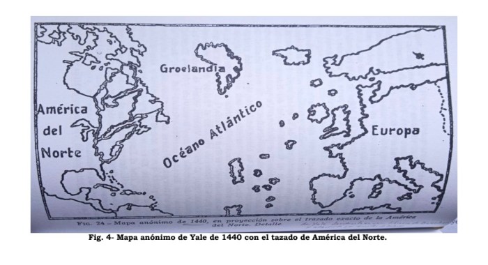 El mapa de 1440 o mapa de Yale, pues ahí se conserva después de comprado por esta Universidad, muestra cómo se sabía de su existencia, aunque no como se supo después de Colón.