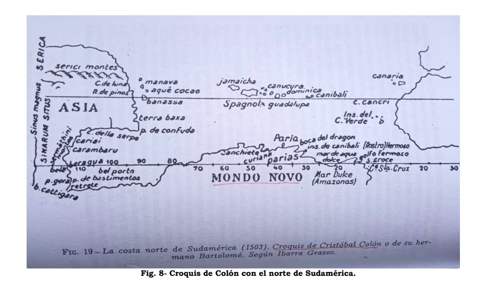 “Colón sabe, antes de partir, que va a alcanzar, no el Asia, sino un Mondus Novus que no es sino la Península de Cattigara. Sabe perfectamente dónde se halla y juega con las cifras para hacer creer que las costas del Asia están precisamente en el lugar dónde se sitúan las de América, no sin utilizar el mapa falso, y que sabe falso, del pobre Toscanelli, hurtado también él”. (Ibídem, p. 101).
