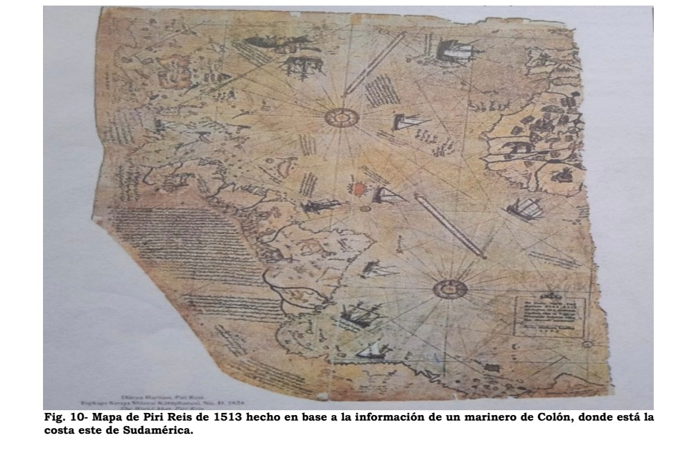El mapa del turco Piri Reis (1515), aunque es posterior al descubrimiento de América, tiene también relevancia pues fue hecho en base a un mapa de un marinero de la tripulación de Colón, tal como dice Jacques de Mahieu: “El cartógrafo turco nos dice, en las innumerables anotaciones de la parte que nos queda de su mapamundi, que había obtenido de un marinero de Colón, convertido en su esclavo, los datos que utilizó para trazar las costas de la América Central”. (La Geografía Secreta de América antes de Colón, p. 36).
