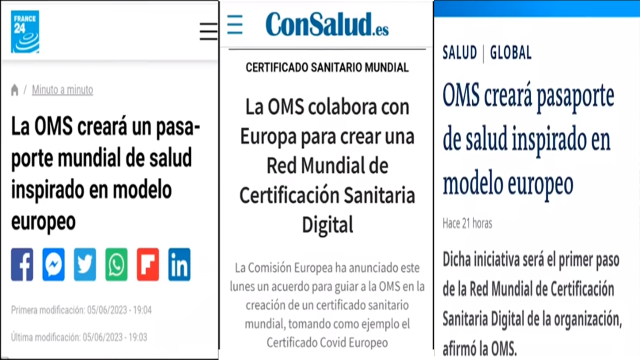 Se trata de un cambio total en la infraestructura de salud, algo que ahora, amigos, para junio del 2023, ya está entrando en vigor con medios oficiales, anunciándolo por todos lados; se dice que mamá OMS creará entonces un pasaporte de salud inspirado en el modelo europeo.