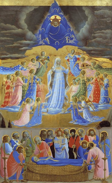 Considera cómo el día trece de Agosto, Viernes, antes de las tres de la tarde entraron todos los Apóstoles, discípulos y otros fíeles al oratorio de nuestra Santísima Señora, y estando todos ordenadamente puestos en su presencia, se levantó de una tarima donde estaba hincada de rodillas, y pidiendo licencia al Apóstol San Pedro, postrada al pie de cada uno de ellos, empezó a pedir perdón, despedirse y pedir que la echasen su bendición, para partir de este mundo. Con esta acción que hizo y palabras que habló, se derritieron los corazones de los Apóstoles y demás fieles, y deshechos en lágrimas, quedaron todos en silencio y oración y en este tiempo, bajó de las alturas su Hijo Santísimo con innumerables cortesanos; así de la angélica como de la humana naturaleza, dióle opción a su Santísima Madre para si quería pasarse a la Gloria sin pasar por la muerte, y luego que nuestra Reina eligió entrar en la vida eterna pasando por la puerta común de la muerte natural; comenzaron todos los Ángeles a cantar, y al entonar esta música se reclinó Nuestra Señora en su tarima, con las manos juntas y los ojos fijados en su Hijo Santísimo, y cuando los Ángeles llegaron a cantar estos versos: “Levántate, y date prisa, amiga mía; paloma mía, y ven que ya pasó el invierno”, dijo Nuestra Señora: “En tus manos, Señor, encomiendo mi espíritu”; y diciendo esto, expiró, Viernes trece de Agosto a las tres de la tarde.