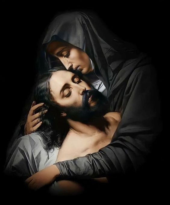 Pues cuando la Virgen le tuvo en sus brazos, ¿qué lengua podrá explicar lo que sintió? ¡Oh ángeles de la paz, llorad con esta Sagrada Virgen; llorad, cielos; llorad, estrellas del cielo, y todas las criaturas del mundo acompañad el llanto de María! Abrázase la Madre con el cuerpo despedazado, apriétalo fuertemente en sus pechos (para sólo esto le quedaban fuerzas), mete su cara entre las espinas de la sagrada cabeza, júntase rostro con rostro, tíñese la cara de la sacratísima Madre con la sangre del Hijo, y riégase la del Hijo con lágrimas de la Madre. ¡Oh dulce Madre! ¿Es ése, por ventura, vuestro dulcísimo Hijo? ¿Es ése el que concebiste con tanta gloria y pariste con tanta alegría? ¿Pues qué se hicieron vuestros gozos pasados? ¿Dónde se fueron vuestras alegrías antiguas? ¿Dónde está aquel espejo de hermosura en que os mirábades?