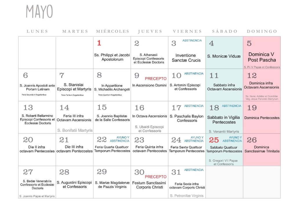 Al comenzar cada mes publicaremos dos calendarios, uno más simple y otro más completo.
