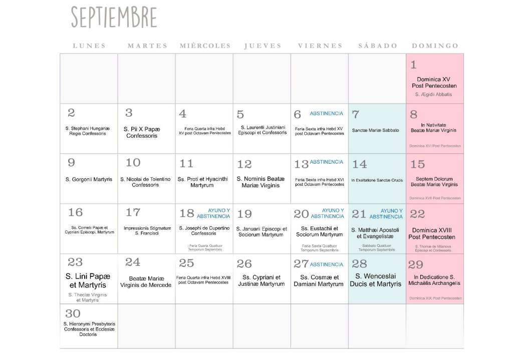 Al comenzar cada mes publicaremos dos calendarios, uno más simple y otro más completo.