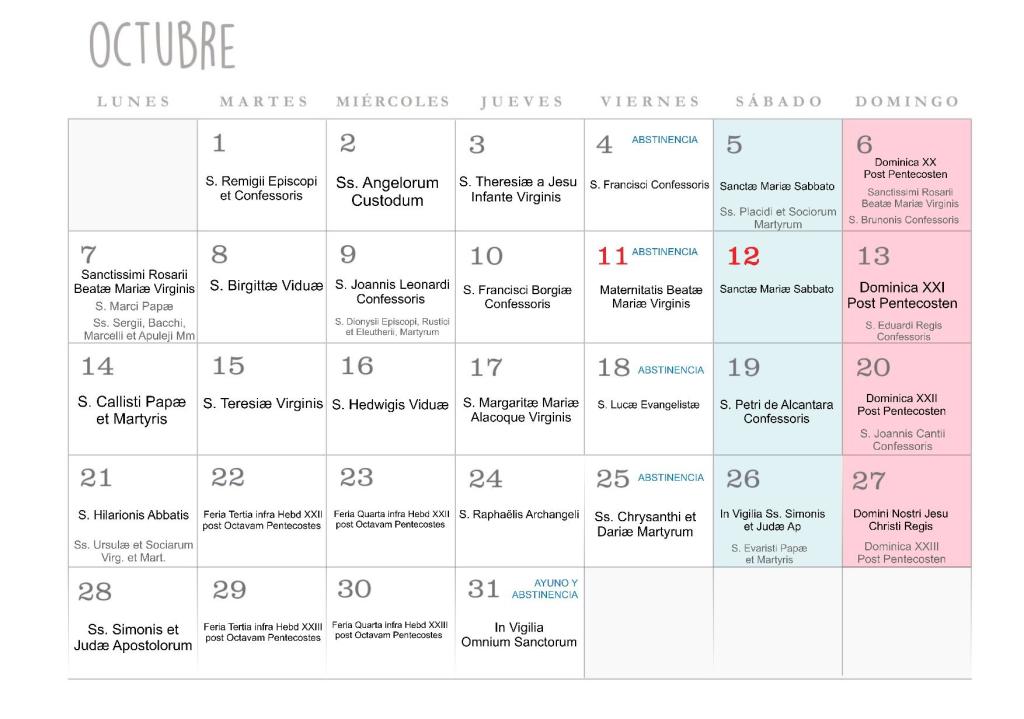 Al comenzar cada mes publicaremos dos calendarios, uno más simple y otro más completo.