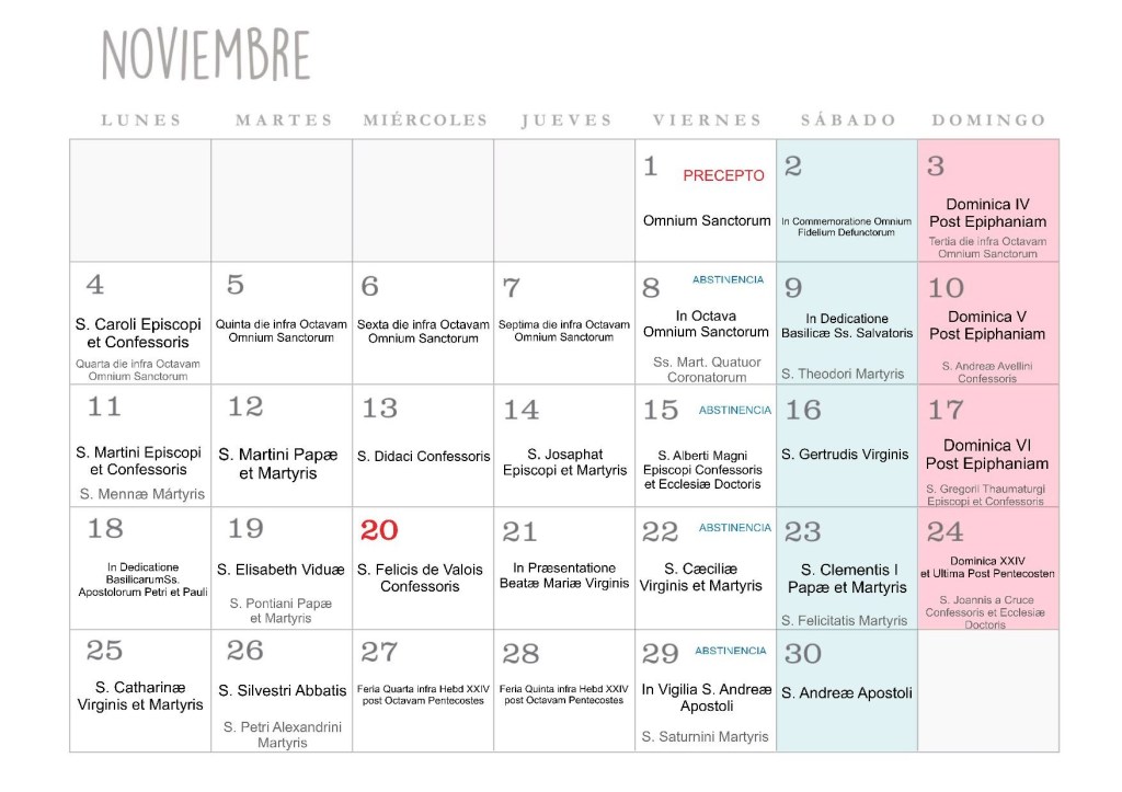 Al comenzar cada mes publicaremos dos calendarios, uno más simple y otro más completo.