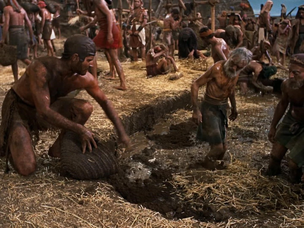 Postrados, humillados, amordazados y enlodados, los nuevos esclavos evocan la servidumbre del pueblo elegido en Egipto.
