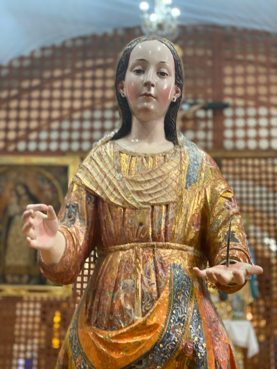 El Arcángel San Gabriel, iluminándola con un rayo de luz, le anunciaba la inmediata presencia de la Reina de la Creación.