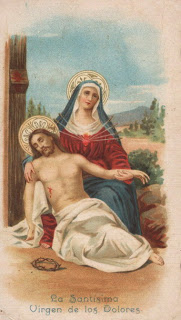 Por los dolores menos principales que sufristeis, y por las lágrimas que derramasteis en la Pasión de vuestro Hijo os saludo, oh afligida Madre con tres Ave Marías.