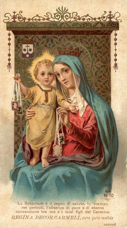 ¡Oh Virgen del Carmen, María Santísima! Que diste en tu Santo Escapulario a los que devotamente le visten un firmísimo escudo para defenderse de todos los peligros de este mundo, y de las acechanzas del demonio, acreditando esta verdad con tantos y tan singulares milagros.