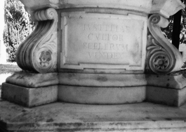 Religioni integerrimus custos Auctor studiorum optimorum Obsequentissimus in Christi Sedem Justitiæ cultor, scelerum vindex |