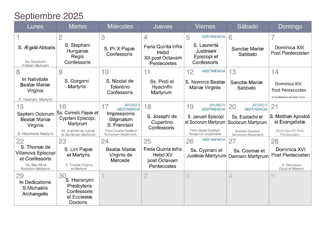 Al comenzar cada mes publicaremos dos calendarios, uno más simple y otro más completo.
