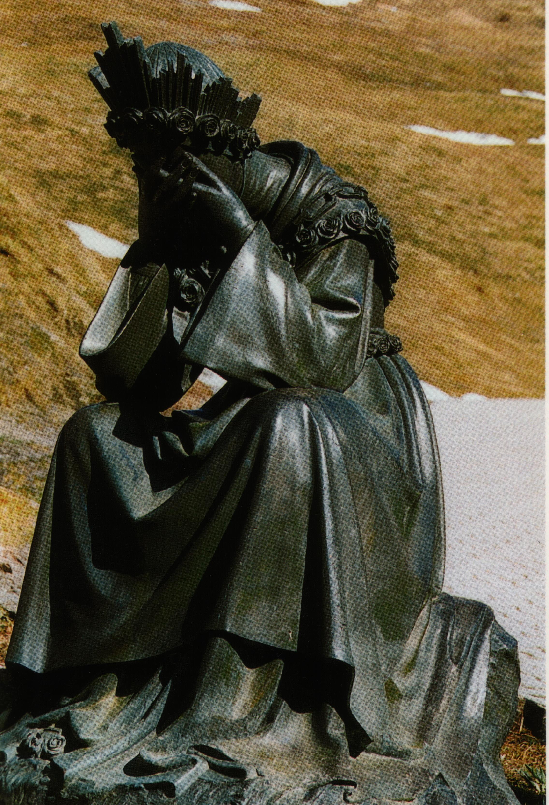 Entonces, descienden hacia ella. La miran, ella no cesa de llorar: «Parecía una madre a quien sus hijos habían pegado y se había refugiado en la montaña para llorar».