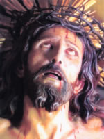 «Al principio Nuestro Señor parecía estar vivo; Su cabeza conservó entonces su posición habitual y su semblante la expresión natural, pero sus ojos estaban llenos de vida y miraban en diferentes direcciones… Entonces su mirada se dirigió hacia el centro, donde estaban los marineros, a quienes contempló durante mucho tiempo; luego miró a la izquierda, hacia la sacristía, con una mirada notablemente severa que mantuvo durante un tiempo. Ahora llegó el momento más conmovedor de todos. Jesús nos miró a todos, pero con tanta dulzura y bondad, tan expresivamente, con tanto amor y divinidad, que nos arrodillamos, lloramos y adoramos a Cristo… Entonces Nuestro Señor siguió moviendo sus párpados y ojos, que brillaban como si estuvieran llenos de lágrimas; luego movió sus labios suavemente, como si dijera algo o rezara. Al mismo tiempo, la señora mencionada que estaba a mi lado vio al Amo intentando mover sus brazos y esforzándose por liberarlos de la Cruz.»