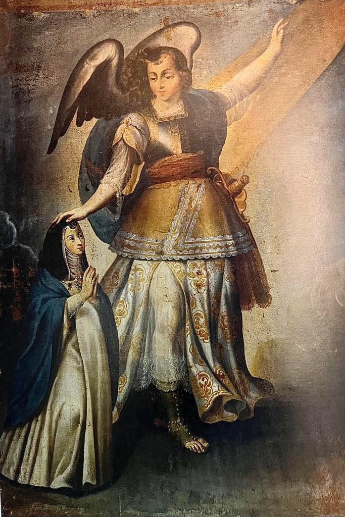 A los 9 años de edad, al momento de su Primera Comunión, la Bondad Divina le revela los misterios de la Sagrada Eucaristía que operan tan eficazmente en las almas de los fieles que le reciben dignamente. Cuando, en su afán de sacrificada misionera de la Limpia Concepción, endereza el rumbo de su vida hacia la América; y sintiéndose cabalgar sobre el lomo encrespado del océano, que pone miedo en las entrañas y pavor de muerte en el chasquido sibilante de sus olas, allí, en ese escenario de grandeza y de aterrante misterio, se le aparece la Estrella del Mar y la Reina del Creado, para asegurarle que todo el furor del averno y la mar no será capaz de impedir la fundación del Monasterio Real de la Limpia Concepción, ni podrá jamás destruirlo pese a las tormentas de todo género que se sucederán una tras otra en el correr de los tiempos. Y la palabra de la Reina se ha cumplido y seguirá cumpliéndose.