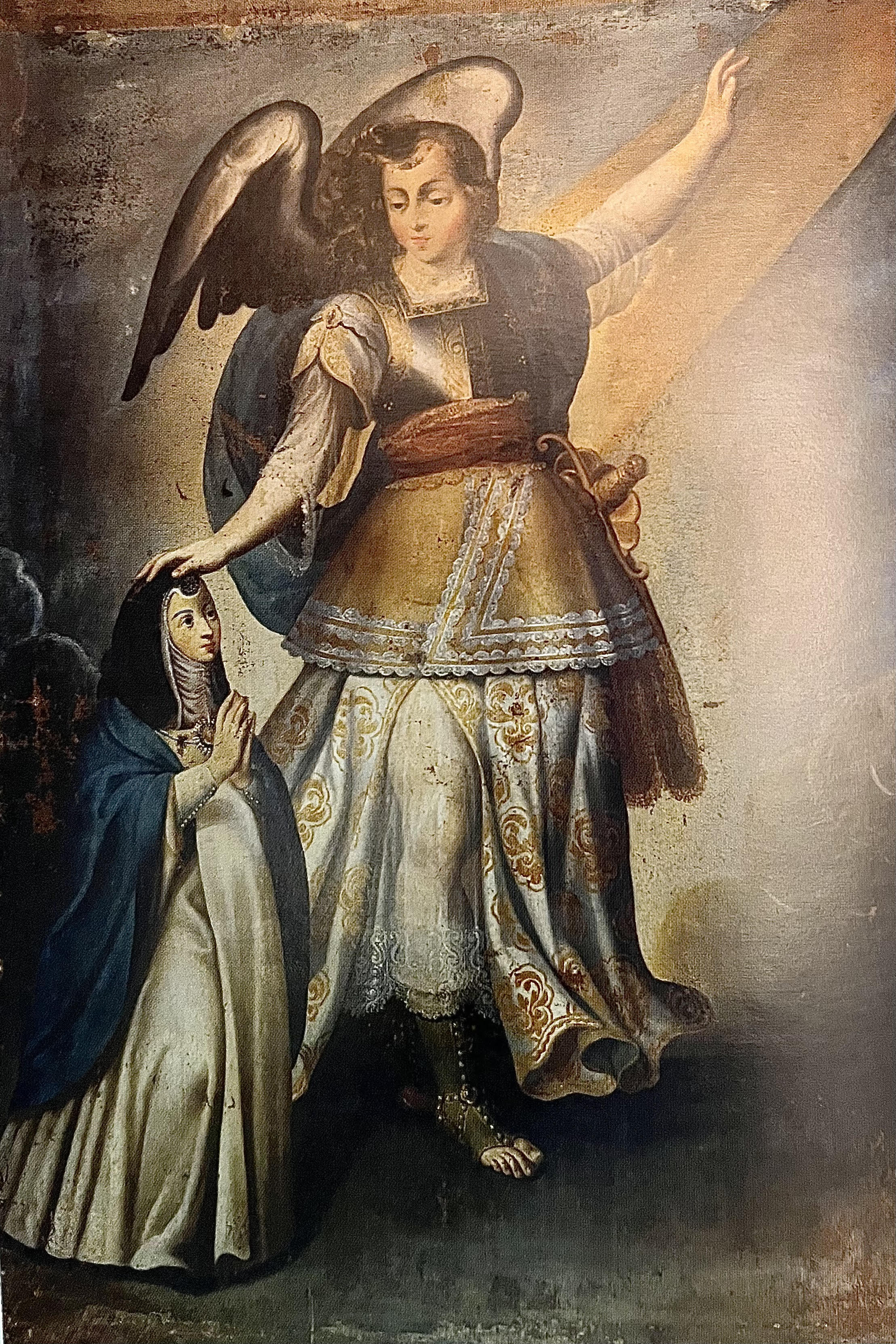 A los 9 años de edad, al momento de su Primera Comunión, la Bondad Divina le revela los misterios de la Sagrada Eucaristía que operan tan eficazmente en las almas de los fieles que le reciben dignamente. Cuando, en su afán de sacrificada misionera de la Limpia Concepción, endereza el rumbo de su vida hacia la América; y sintiéndose cabalgar sobre el lomo encrespado del océano, que pone miedo en las entrañas y pavor de muerte en el chasquido sibilante de sus olas, allí, en ese escenario de grandeza y de aterrante misterio, se le aparece la Estrella del Mar y la Reina del Creado, para asegurarle que todo el furor del averno y la mar no será capaz de impedir la fundación del Monasterio Real de la Limpia Concepción, ni podrá jamás destruirlo pese a las tormentas de todo género que se sucederán una tras otra en el correr de los tiempos. Y la palabra de la Reina se ha cumplido y seguirá cumpliéndose.