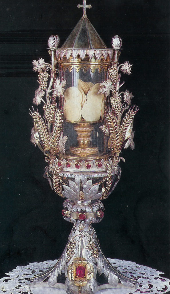 El 5 de agosto de 1951, tuvo lugar otro robo sacrílego en la iglesia de San Francisco que involucraba a las hostias milagrosas. Esta vez, sin embargo, el ladrón solo se llevó el contenedor precioso, dejando las hostias en el altar. El arzobispo colocó entonces las hostias en un ciborio de plata y lo selló. Al año siguiente, el arzobispo, en presencia de varios testigos, sacó las hostias del ciborio, las contó y examinó, y las hizo fotografiar. Luego fueron trasladados a una elaborada custodia especialmente construida para este propósito.