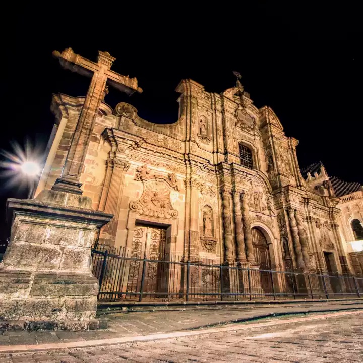 Los jesuitas llegaron a Quito el 19 de julio de 1586, con el encargo explícito de fundar iglesia, colegio y residencia. Su piedad ignaciana, marcada por los Ejercicios Espirituales y un celo ardiente por la gloria de Dios y la salvación de las almas, se manifestó en una extraordinaria fecundidad artística y formativa. Formaron santos y sabios: misioneros en la Amazonía, teólogos y cronistas como el padre Juan de Velasco.